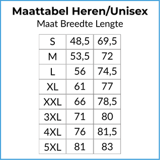 - Onze t-shirts worden op bestelling gedrukt om verspilling te voorkomen. De levertijd is ±2 weken.